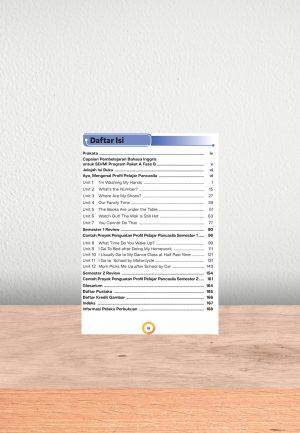 Materi pembelajaran yang disajikan dalam buku ini akan membantumu untuk mengasah kemampuan menyimak, membaca, memirsa, dan berbicara. Keterampilan-keterampilan tersebut akan diasah melalui pembelajaran dengan tema-tema yang berkaitan dengan kehidupanmu. Kamu akan belajar tentang ungkapan sapaan, perkenalan diri, angka 1–10, alat tulis dan benda-benda di kelas, warna, serta bentuk dan ukuran benda. Selain materi-materi tersebut, kamu juga akan dituntun untuk belajar dan mengaplikasikan perilaku baik yang sesuai dengan nilai-nilai Pancasila.